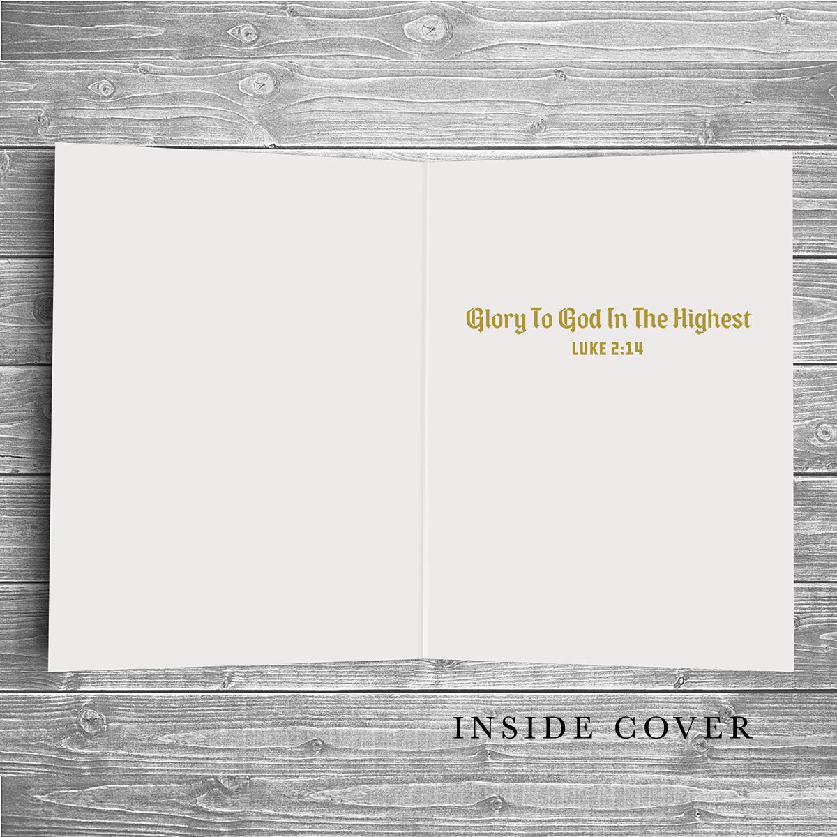 Cards are printed on the inside with a bible verse, Luke 2:14.